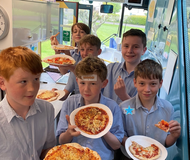 James spoke to parents and children at Hazlegrove about the balloons of self -belief, an illustrative tool used with the children to understand how they might feel in different situations. The children learned about ways in which they could challenge themselves, develop a positive mental attitude as well as find that sometimes elusive sense of belonging. The fully converted London double-decker provided the ideal environment whereby children relaxed and chatted whilst making pizzas downstairs before sharing food and thoughts together sitting upstairs in the well-being workshops run by the charity’s team.