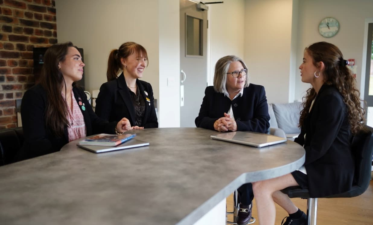 Sixth Form pupils working in collaboration with our Head of Sixth Form, Mrs Kratt