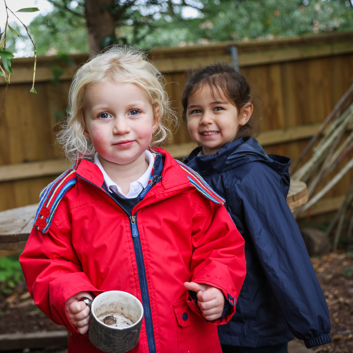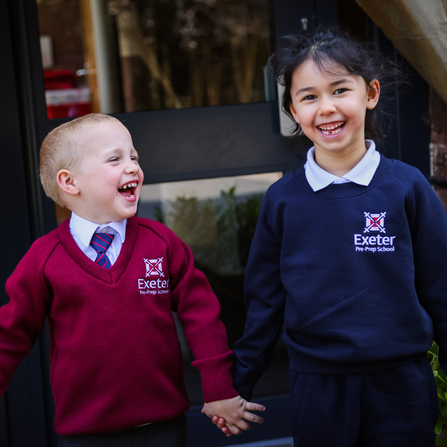 Boy and girl holding hands outside Exeter Pre-Prep school