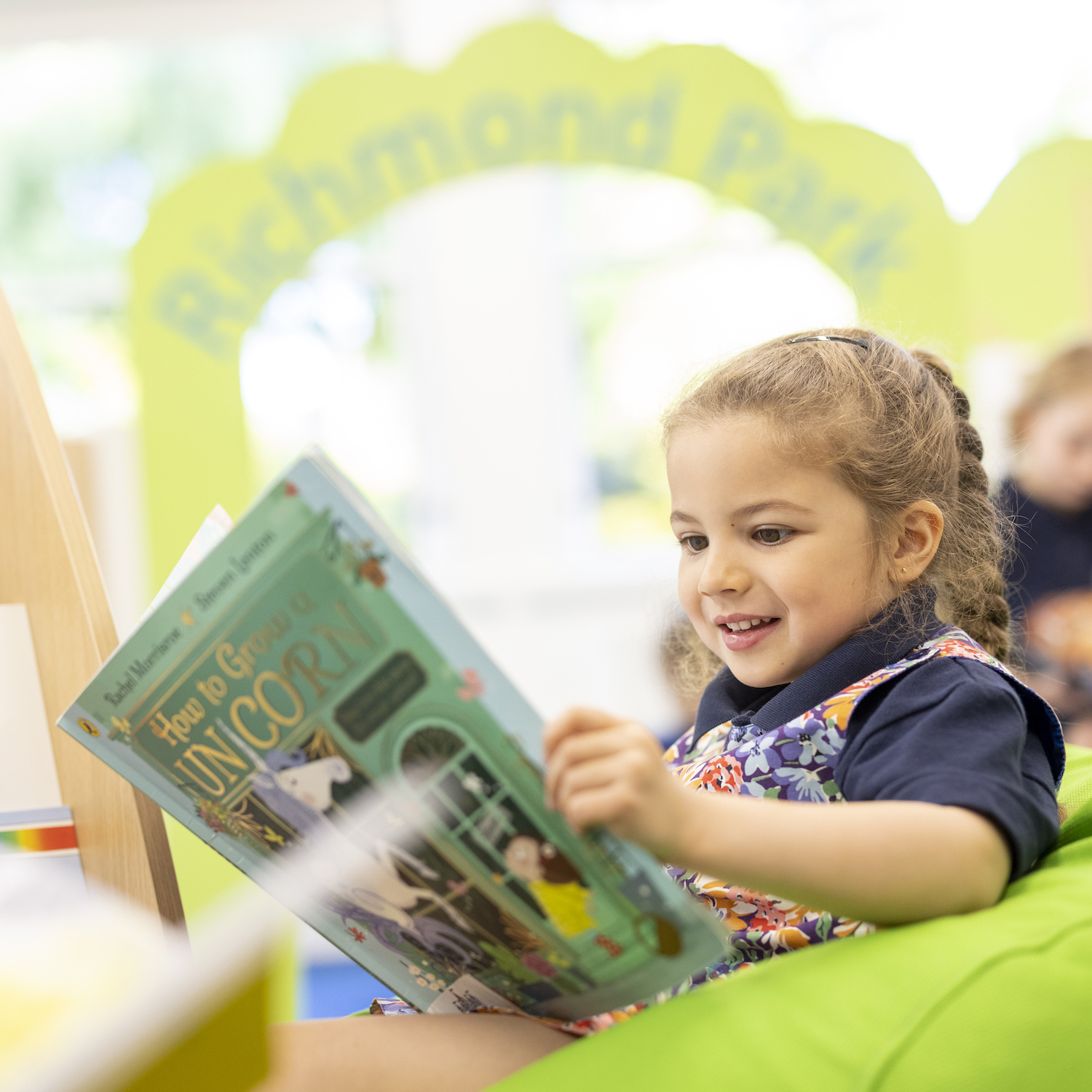 little girl reading a book