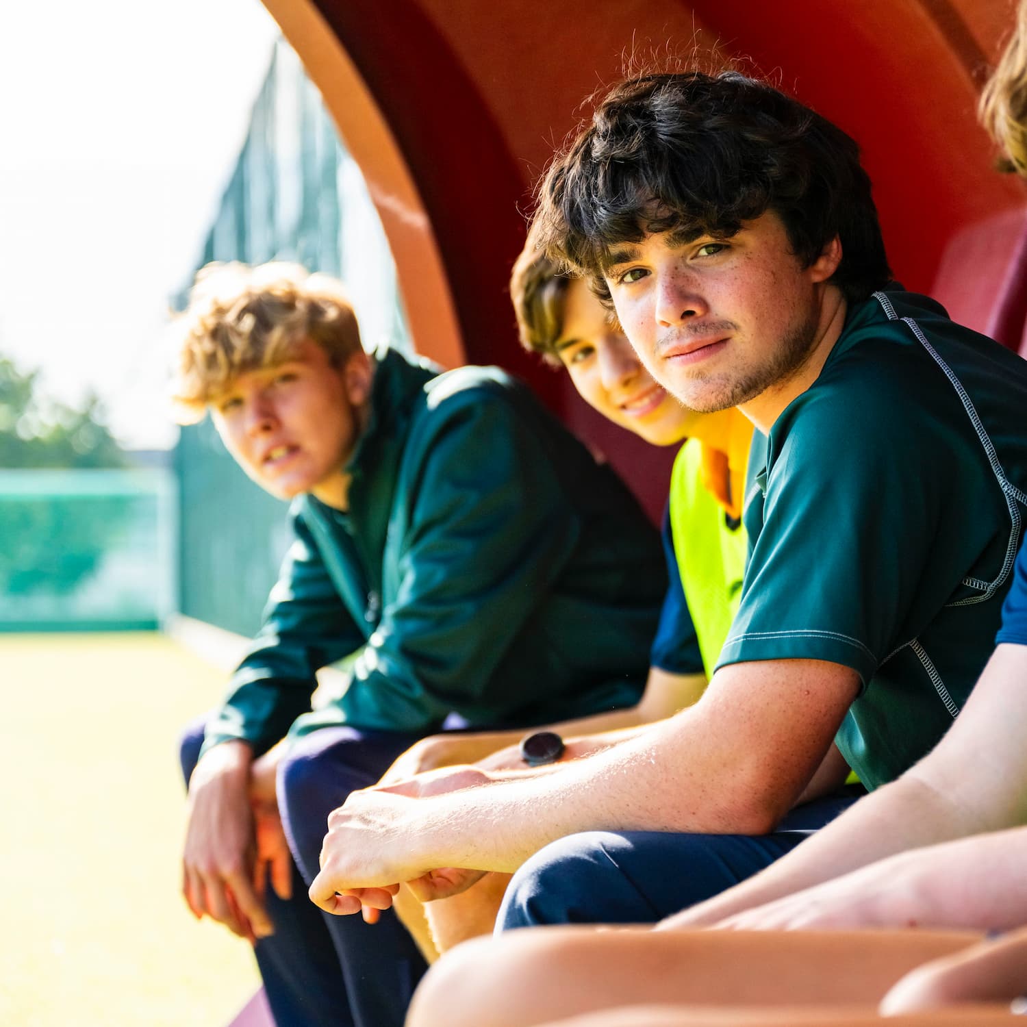 Boys sitting in the football dugout at London Park Clapham
