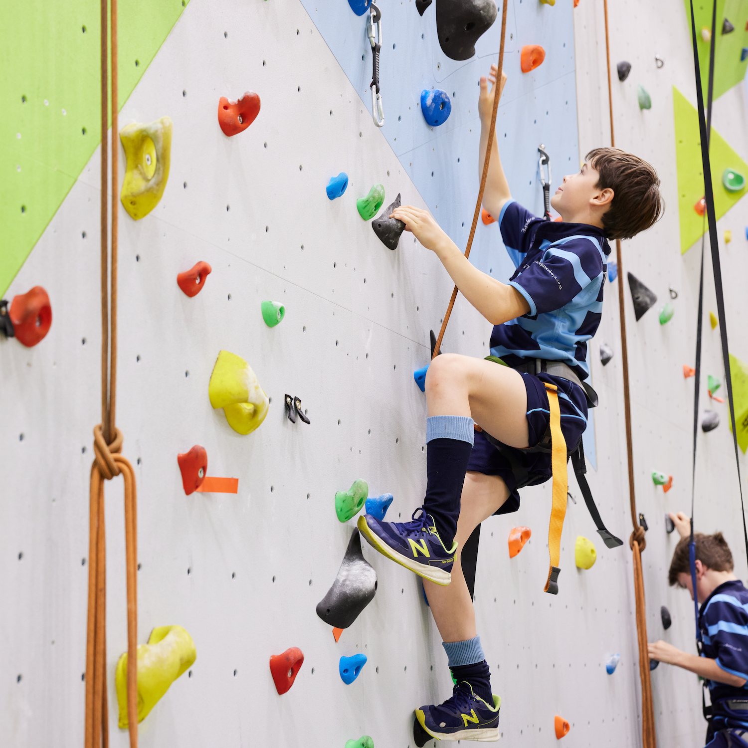 Boy on an indoor climbing wall