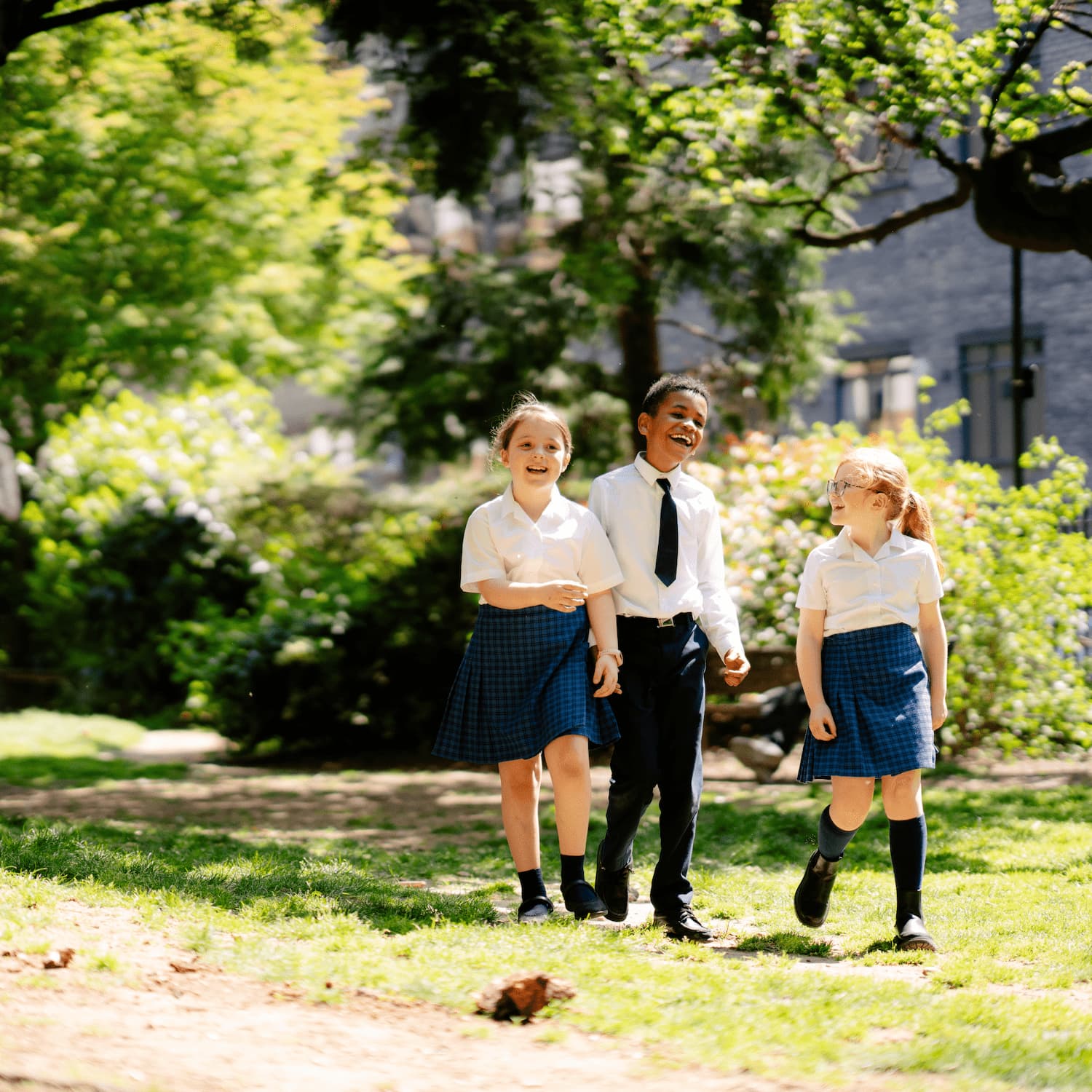 Pupils walking on the grass in white shirts