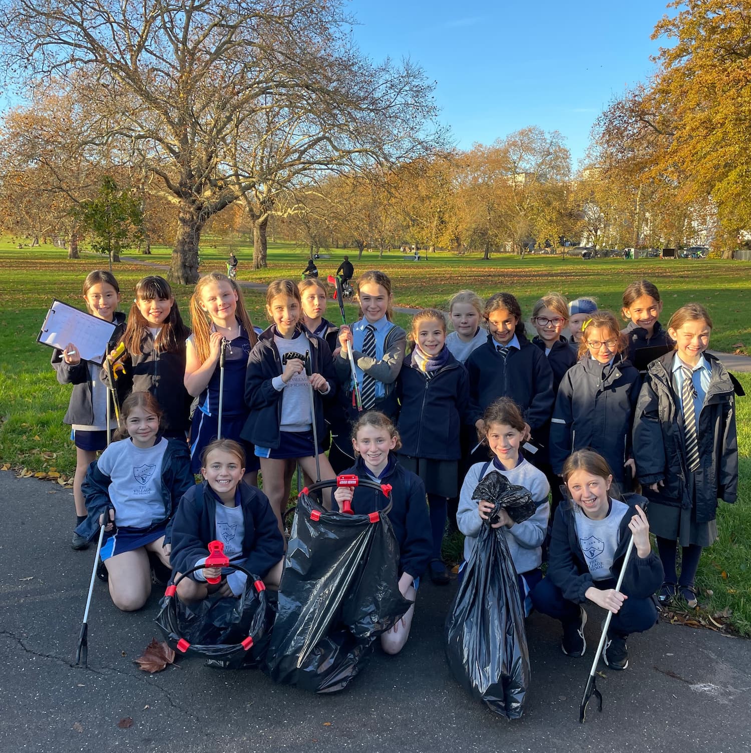 girls litter picking in the park