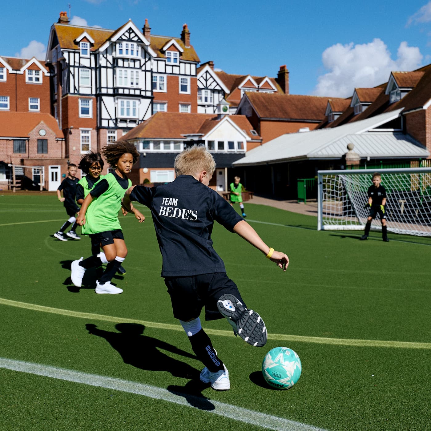 Football on the astroturf at Bede's Prep