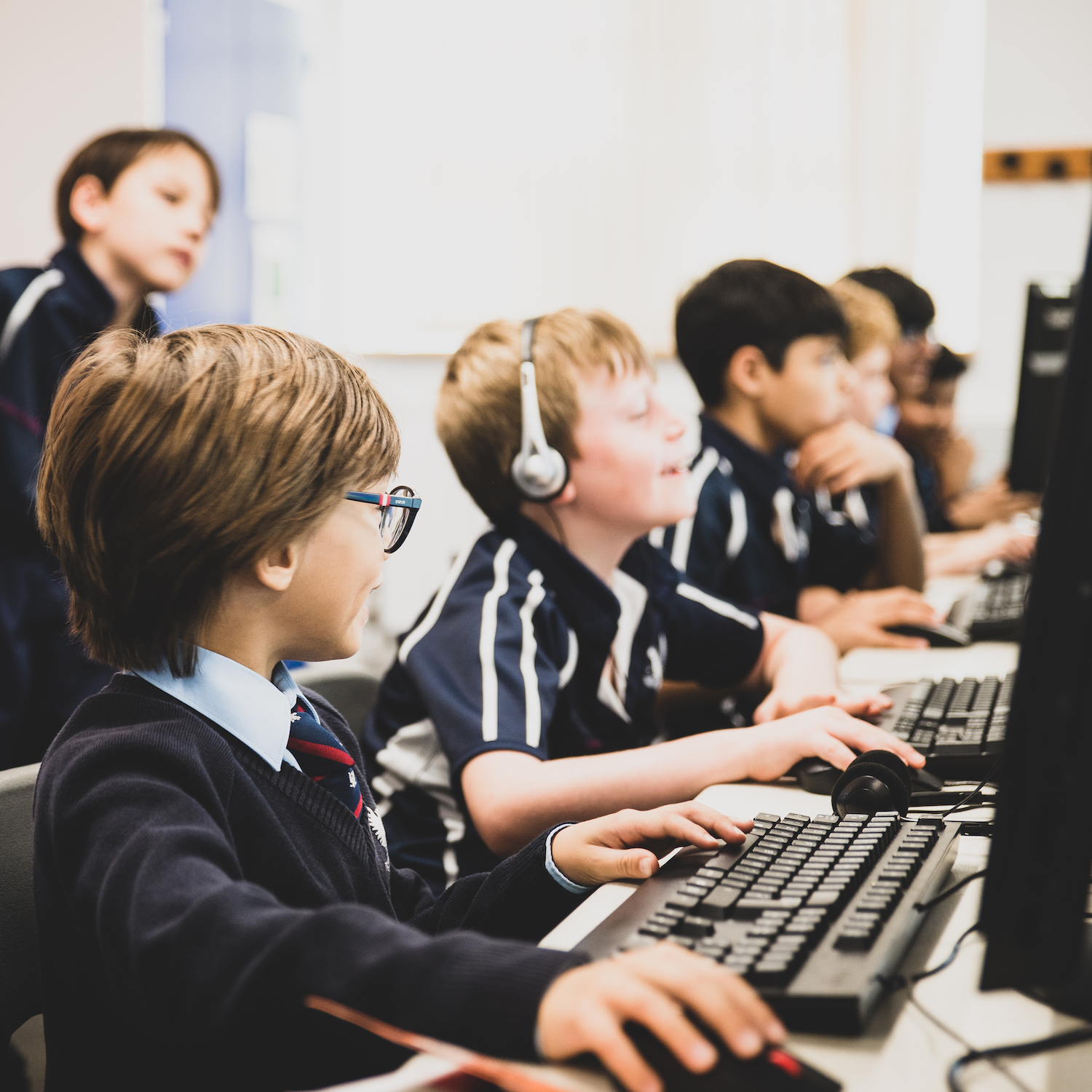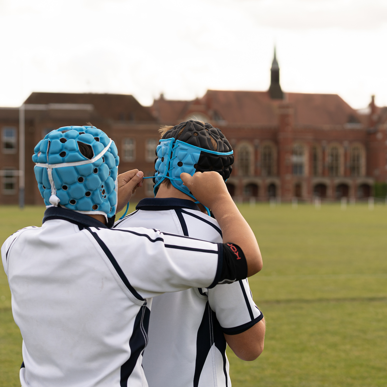 Boys in blue scrum caps at Bedford Prep School