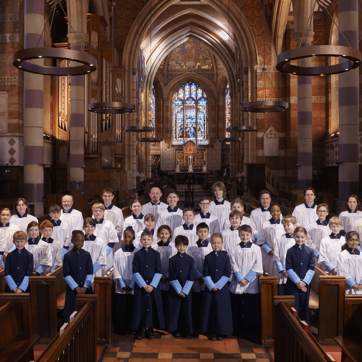 Bilton Grange choristers inside the chapel at Rugby School