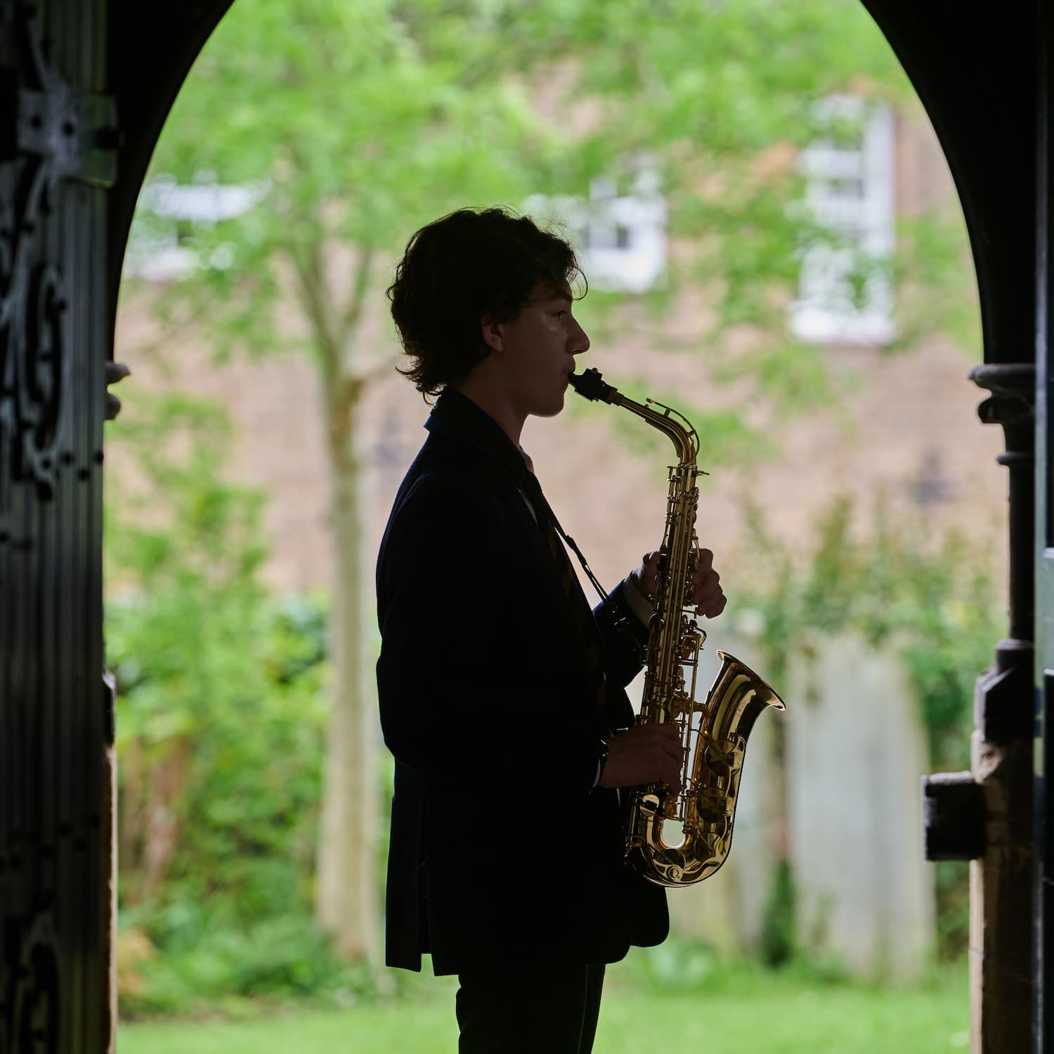 Chigwell pupil playing the saxophone outside