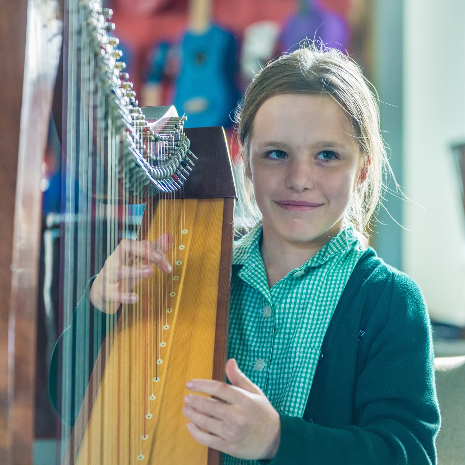 girl playing a harp