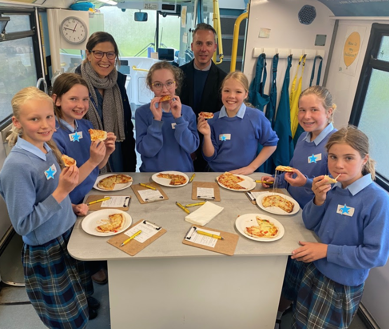 James spoke to parents and children at Hazlegrove about the balloons of self -belief, an illustrative tool used with the children to understand how they might feel in different situations. The children learned about ways in which they could challenge themselves, develop a positive mental attitude as well as find that sometimes elusive sense of belonging. The fully converted London double-decker provided the ideal environment whereby children relaxed and chatted whilst making pizzas downstairs before sharing food and thoughts together sitting upstairs in the well-being workshops run by the charity’s team.