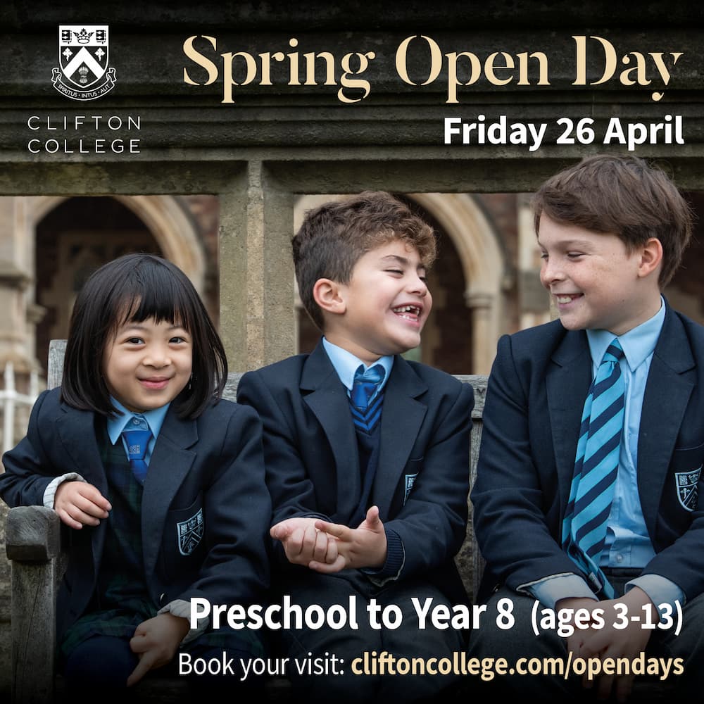 If you are interested in attending Clifton College’s upcoming Spring Open Day on Friday 26 April 2024, Preschool to Year 8 (ages 3-13), please register your place using the link