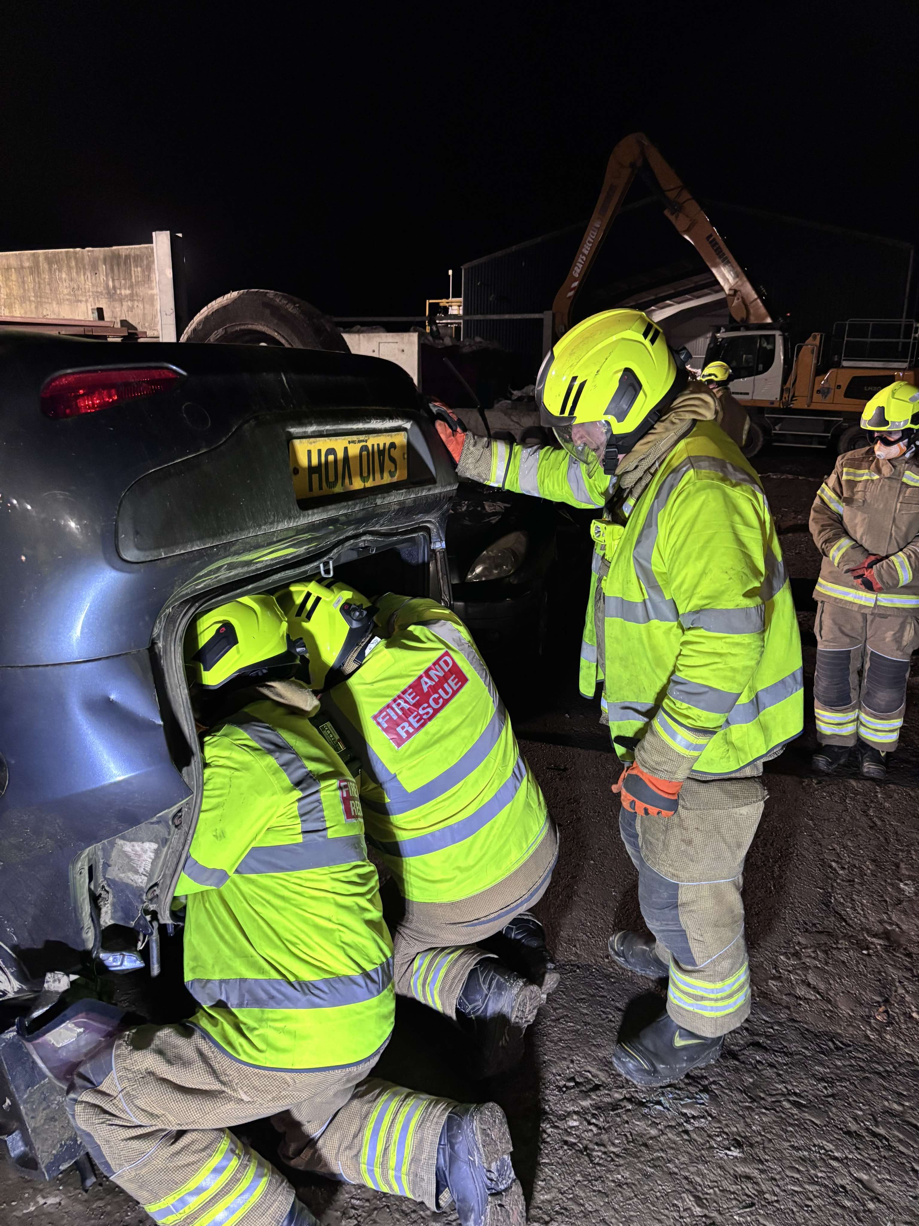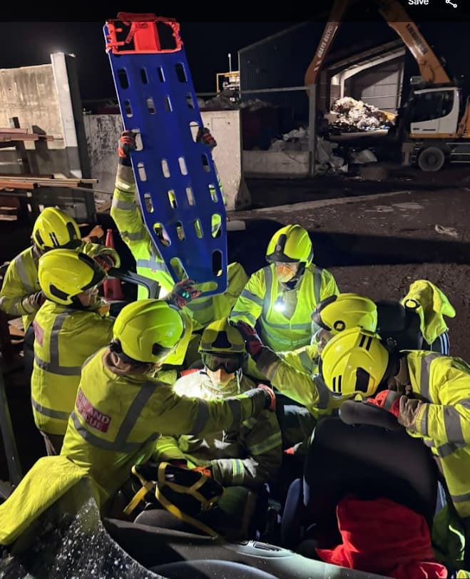 The crew from Buckie fire station were joined by a crew from the Gordonstoun Volunteer Unit to observe the exercise and see the training in action at Gray’s Recycling Services. The Gordonstoun crew were able to assist with being casualties and were extricated from the vehicle. The Unit's support is invaluable in helping us maintain our skills and readiness.'