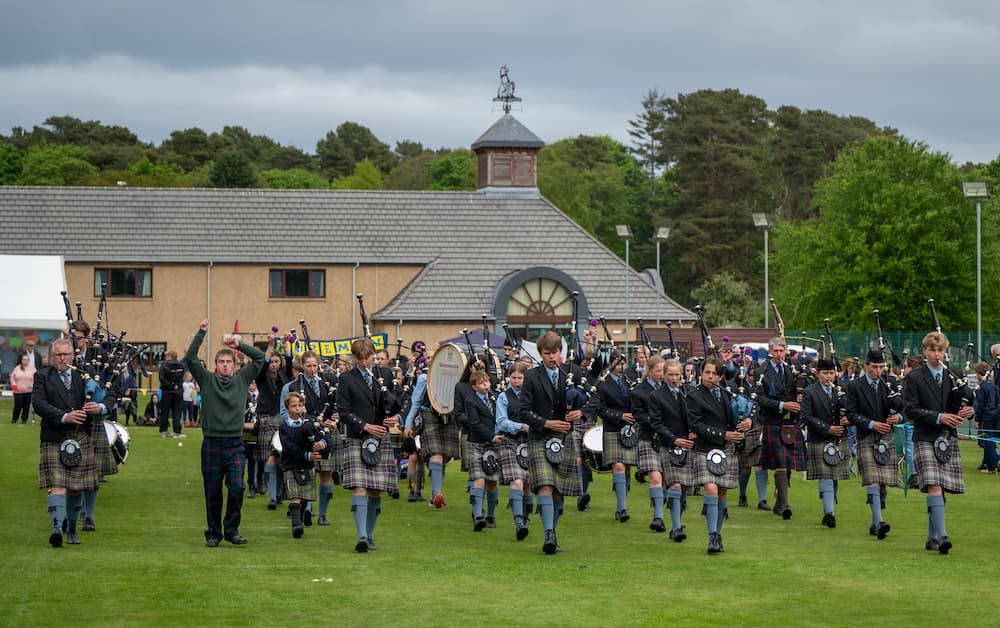 Gordonstoun pipers mark 70th celebrations with special Highland Games performance