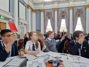 One of the most valuable aspects of the event was the opportunity for pupils to participate in live debates at their tables, where they were encouraged to share and defend their viewpoints. Many of our pupils demonstrated great confidence and maturity, discussing complex issues thoughtfully and respectfully. They also had the chance to contribute to the wider event by taking the microphone and sharing their opinions with the whole room.