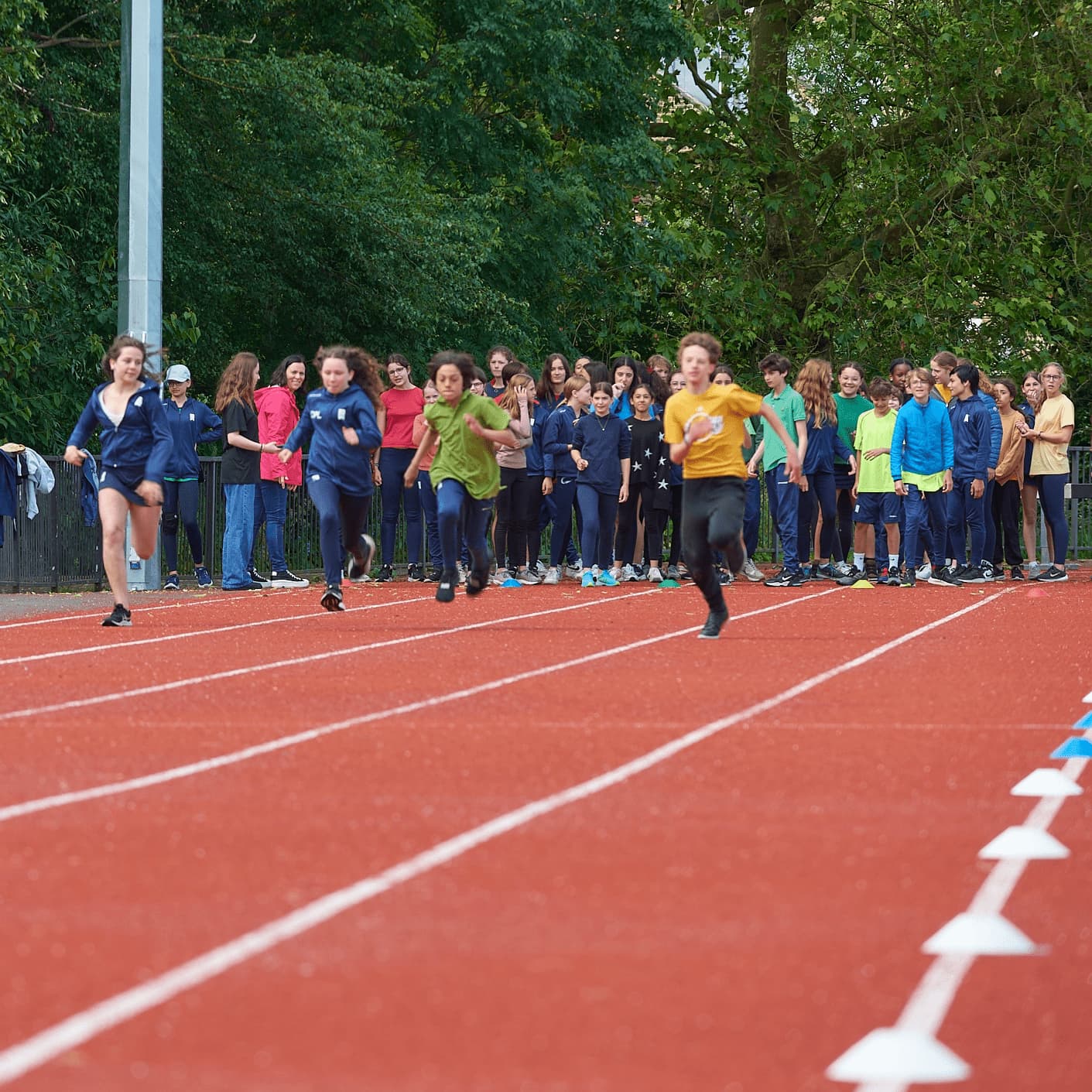 students gathering at an athletics track