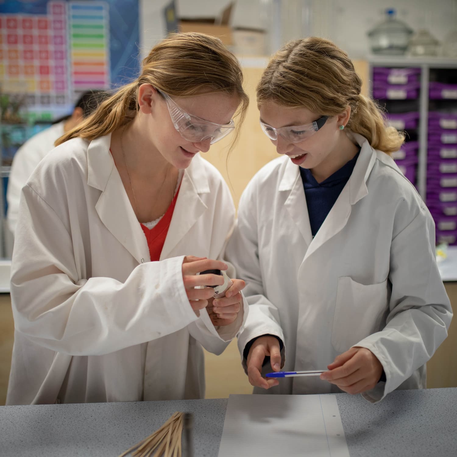 girls in lab coats in a science lesson