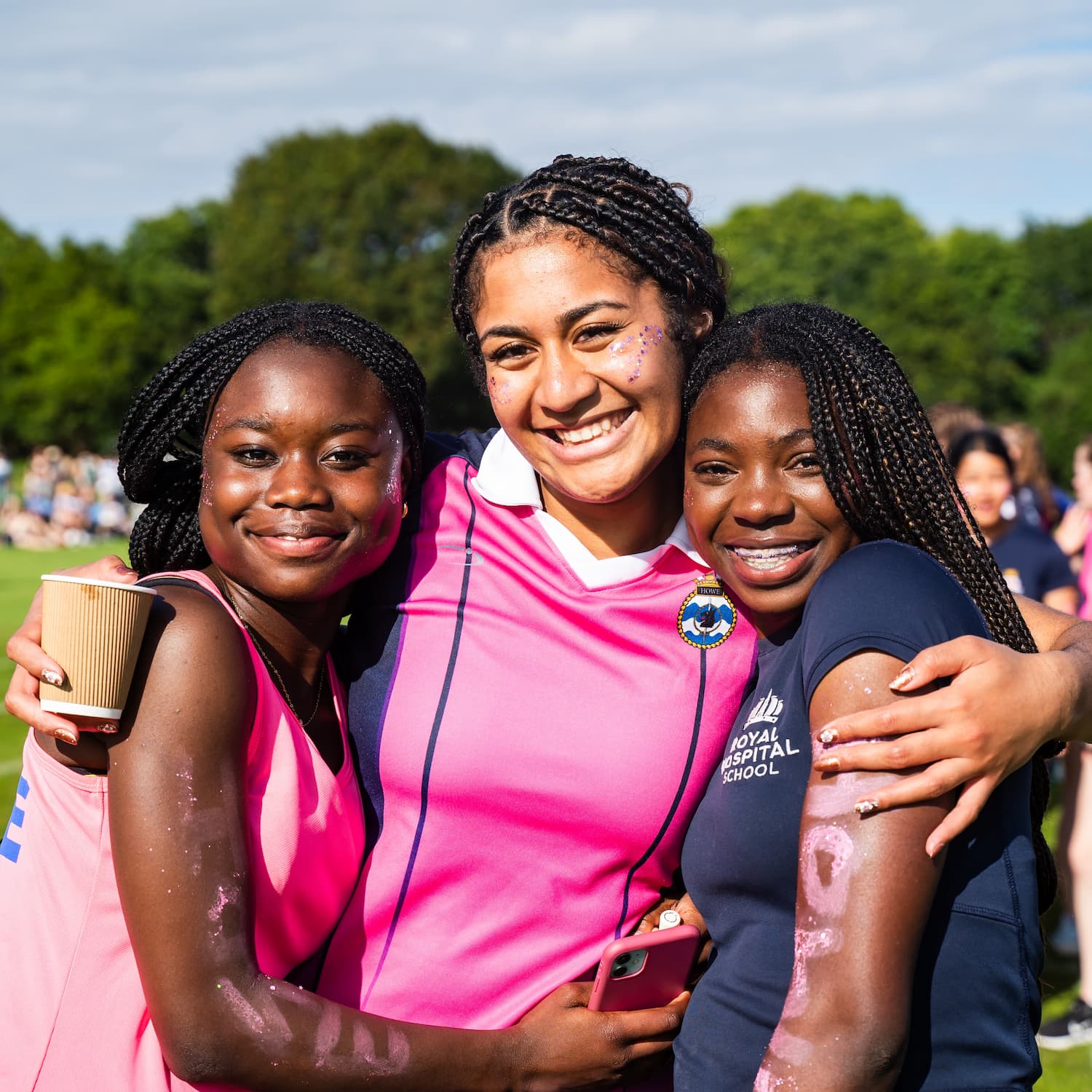 Girls in pink vests on sports day