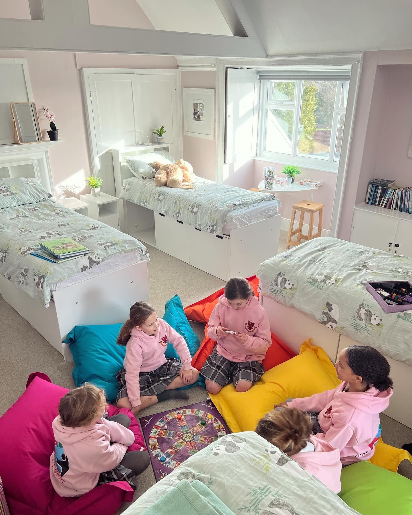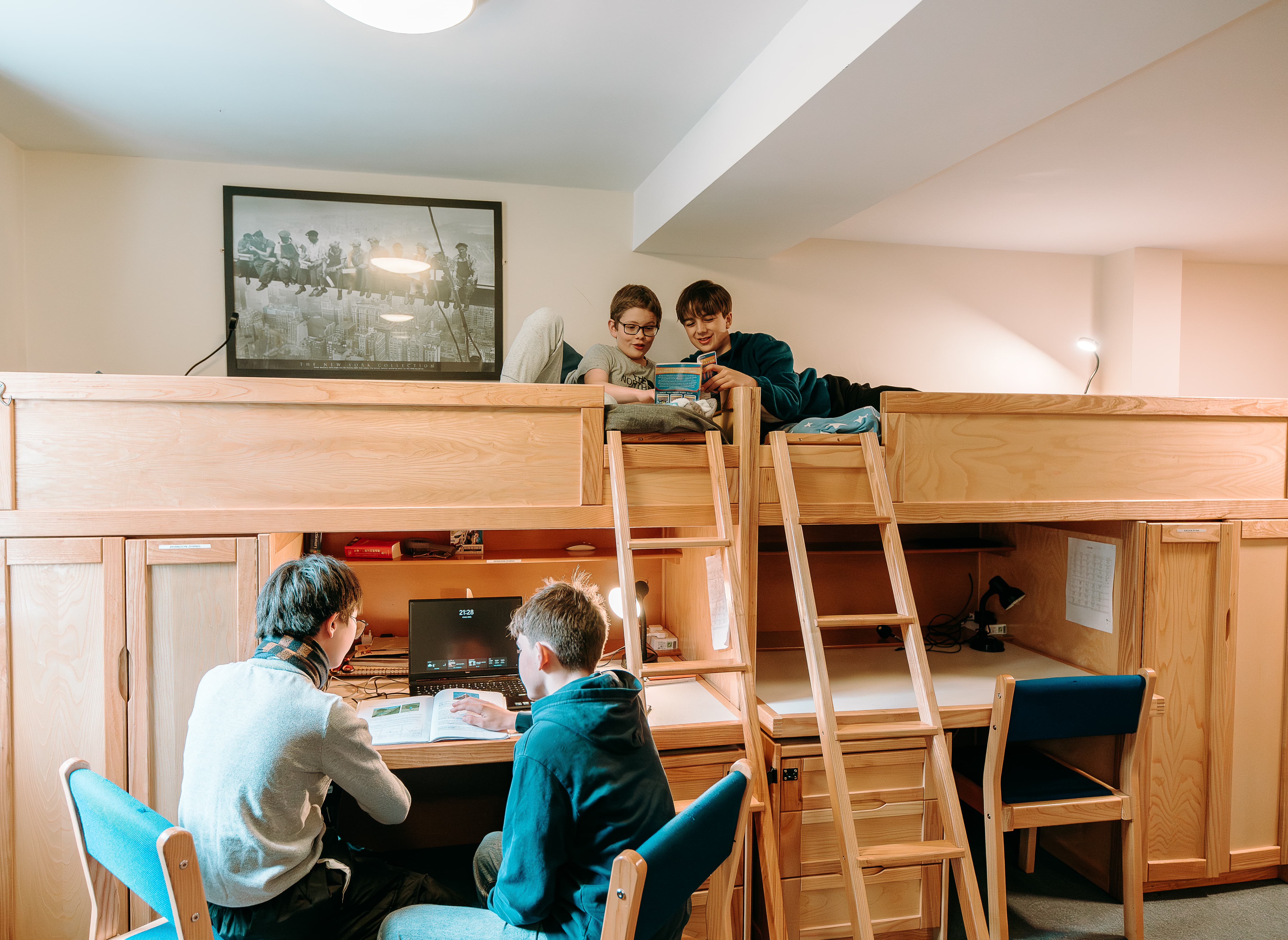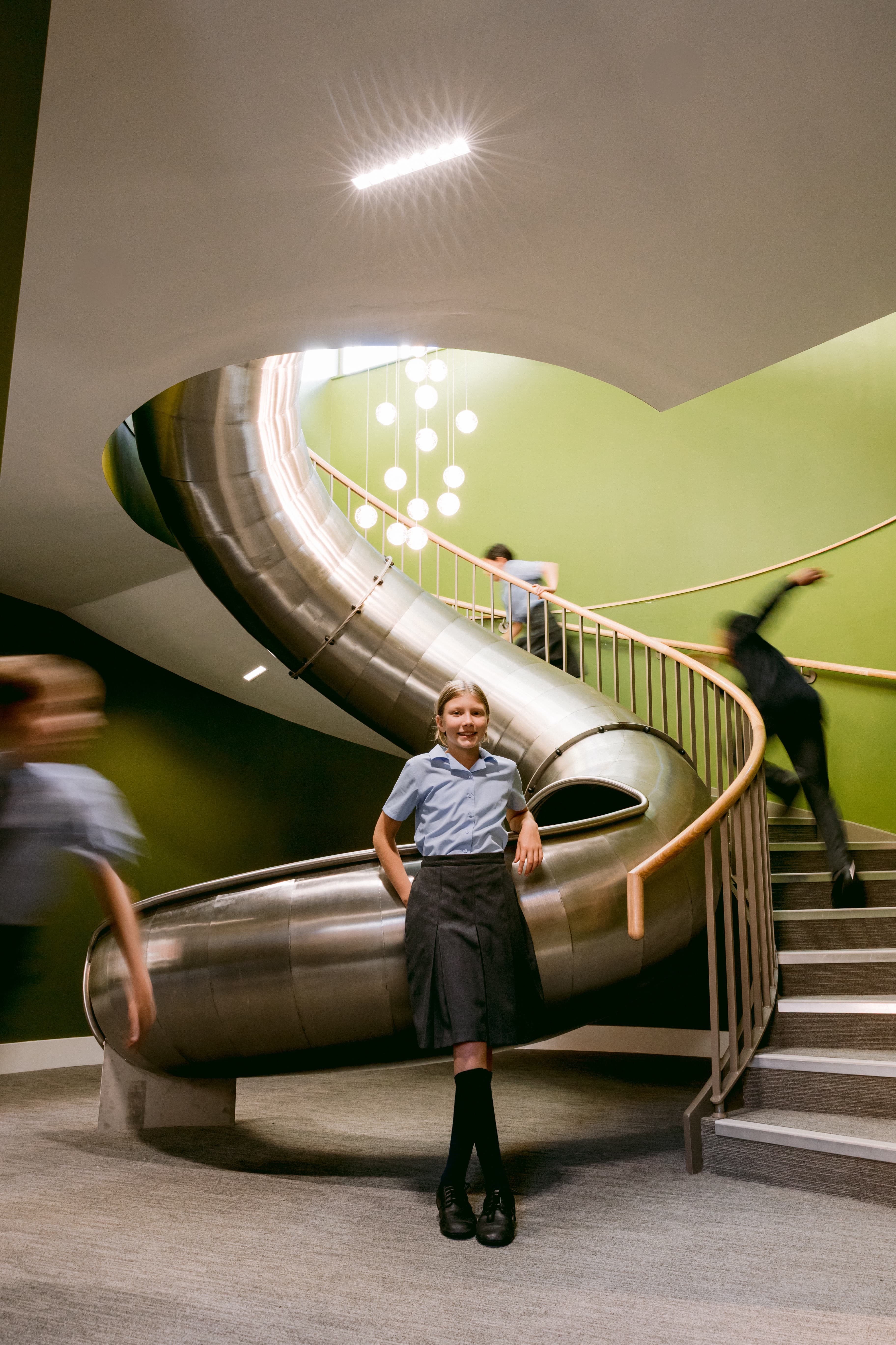 Recognising that family life has changed, the school approached the project from a parents’ perspective. Parents today, Bilton Grange tells us, value ‘flexibility, quality and reassurance’, and if boarding is to thrive, ‘it has to be exceptional in every way’. The design of its new boarding house was led by questions such as ‘What does home look like for today’s eight- to 13-year-olds?’, and the result is striking. It’s more hotel than school, with pupils sleeping in ensuite bedrooms, having access to dedicated hubs for games and music during downtime and donning their PJs for cosy movie nights on big screens. The jewel in Earle House’s crown is an epic helter-skelter that whisks the children down to breakfast each morning. As the school puts it, ‘This is a home, not just a building.’