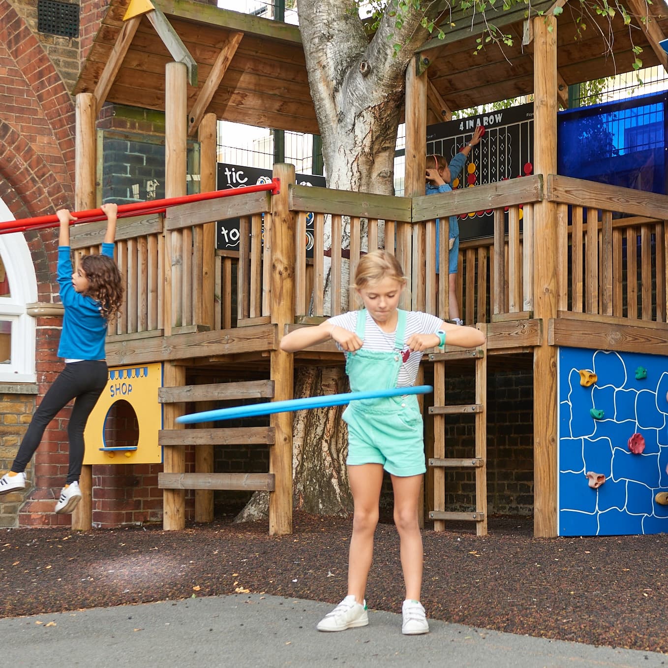 Girl playing with a blue hulahoop