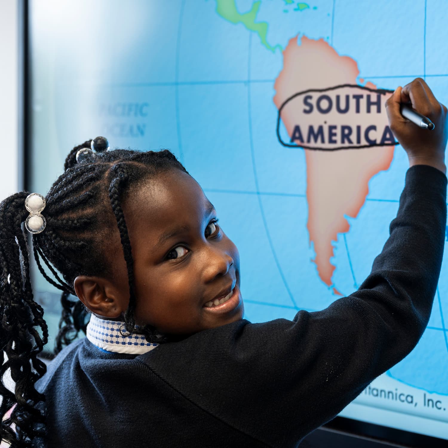 Girl writing on a white board