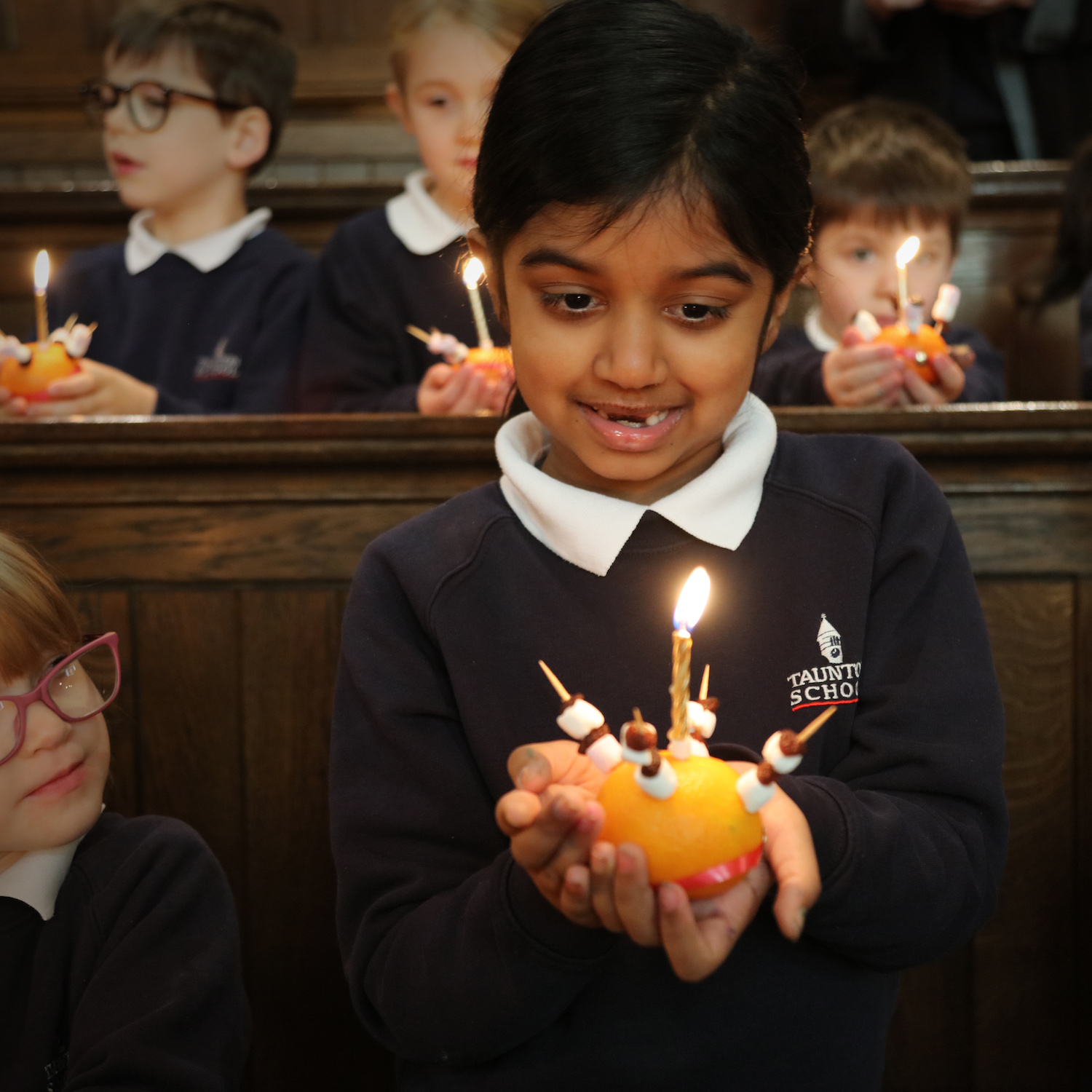 Girl holding a candle in chapel